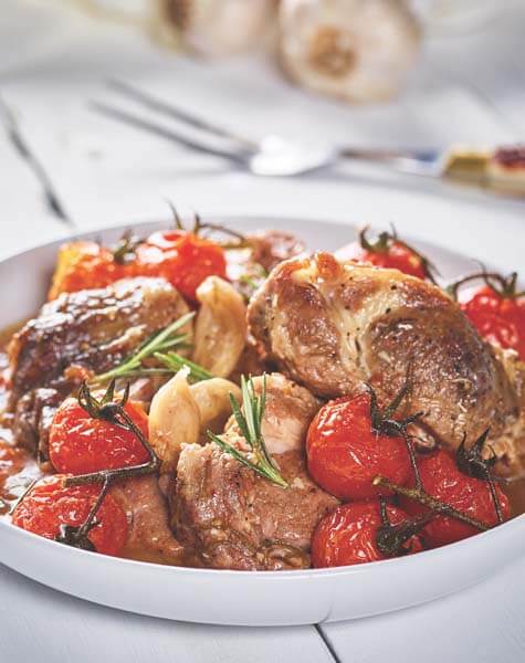 Lamb shoulder with tomatoes and maple syrup