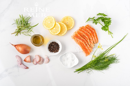 Passionate about gourmet and healthy food, Marie-Lise Roux knows how to please her guests: serving her popular and delicious cured salmon gravlax. This Scandinavian culinary dish consists of a marinated raw salmon fillet in a dry rub of salt, sugar and herbs. Often prepared in her kitchen and becoming very popular among her friends and family, it gradually became a business project. In 2016, Reine Mer was born and in 2018 it launched its first product: handmade salmon gravlax with fresh and eco-responsible ingredients!