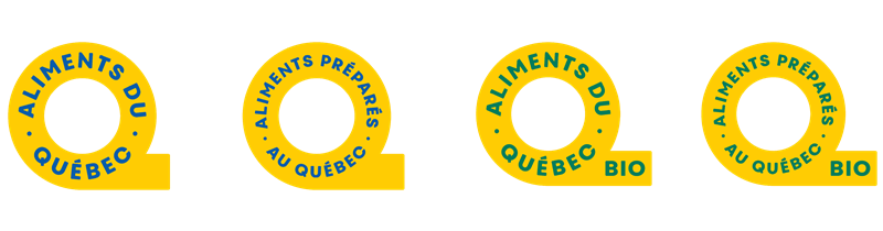 Aujourd’hui, c’est plus de 25 000* produits qui sont vérifiés par Aliments du Québec pour guider les consommateurs en quête de transparence et d’authenticité. Pour vous aider à faire des choix éclairés, repérez les marques de certification d'Aliments du Québec - Aliments du Québec, Aliments préparés au Québec, Aliments du Québec bio et Aliments préparés au Québec bio – grâce au logo jaune et bleu, facilement identifiable et unique gage de provenance québécoise.