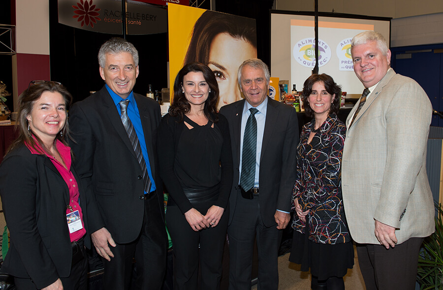 De gauche à droite : madame Marie Beaudry, directrice générale du Conseil de promotion de l'agroalimentaire québécois- Aliments du Québec, monsieur Martin Le Moine, président de la Filière biologique du Québec, madame Chantal Fontaine, porte-parole de la campagne "Aliments du Québec, toujours le bon choix!", monsieur François Gendron, vice-premier ministre et ministre de l'Agriculture, des Pêcheries et de l'Alimentation du Québec, madame Anne-Marie Granger Godbout, présidente-directrice générale du Conseil des appellations réservées et des termes valorisants et monsieur Florent Gravel, président du Conseil de promotion de l'agroalimentaire québécois - Aliments du Québec.