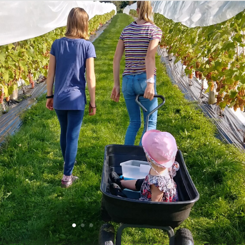 Sur place, les visiteurs peuvent flâner sur la terrasse ensoleillée, pique-niquer en famille, profiter des aires de jeux pour enfants, et se régaler avec les fruits fraîchement cueillis ou découvrir le kiosque débordant de produits faits maison.