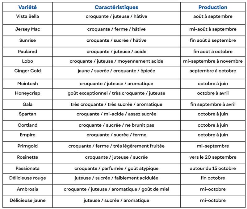 * Source : Site web de Pommes Qualité Québec, section Variétés à découvrir