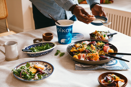 D’ailleurs, le yogourt grec peut remplacer la matière grasse dans un grand nombre de recettes. En plus d'offrir de la texture, il est un choix plus nutritif. Rien de trop beau, n’est-ce pas? En gros, il suffit d’avoir toujours un pot de yogourt grec Oikos au frigo et vous êtes en business. Pour vous aiguiller en cuisine, voici comment le yogourt grec peut remplacer à merveille la matière grasse :
