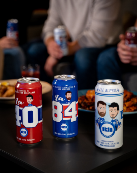 Quel beau projet! On a développé une bière pour les deux anciens joueurs du Canadien de Montréal, qui ont maintenant leur propre balado, La Poche bleue. Pendant la pandémie, ils avaient vraiment envie de faire rayonner les bières locales et nous ont approchés pour qu’on leur en développe une. Ils nous ont dit ce qu’ils avaient envie de boire et nos brasseurs leur ont développé une recette unique. De la première réunion jusqu’à l’embouteillage de la bière, ce projet nous aura pris… un mois! Tout est allé super vite, tout le monde voulait que ça marche et l’énergie y était. Cette collaboration nous a vraiment donné un second souffle. Les gens ont redécouvert nos produits grâce à la bière Poche bleue.