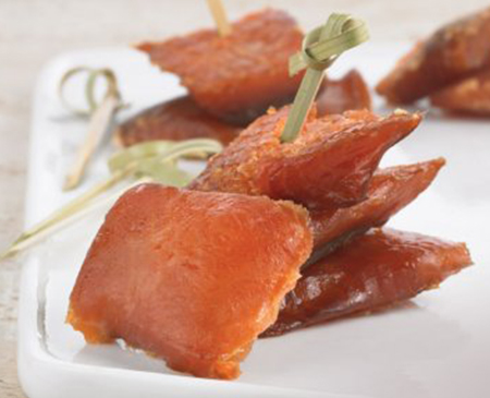 Il est toujours intéressant d’ajouter une nouveauté à table. Cette fois-ci, pourquoi ne pas oser les bouchées de saumon fumé au sirop d’érable d’Atkins et frères? Ces petits morceaux de saumons de l’Atlantique enrobés de sirop d'érable biologique fumé à chaud sont un véritable délice. Pour ceux qui aimeraient les présenter différemment, servez-les sur des brochettes accompagnées de votre sélection de fruits préférés. Une alternative surprenante qui impressionnera toute la famille! Qui sait ce sera peut-être votre nouvelle tradition familiale? Repérez les points de service d’Atkins le plus près de chez vous juste ici.