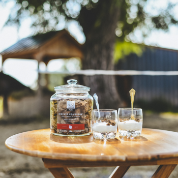 Dans le monde équin, il y a un grand esprit de partage. On donne une carotte à son cheval? Il n’est pas rare qu’on la croque avant. On mange une compote de pommes à l’écurie? Notre cheval en a inévitablement une lichée. C’est pourquoi on voulait créer quelque chose qu’on pourrait partager avec Spirit. C’est d’ailleurs pourquoi on a appelé ça le biscuit équestre, parce que ça implique le cheval et son cavalier.