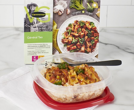 Même si on prend la peine de préparer ses repas pour la semaine le dimanche, il est fort possible qu’on ait besoin d’un coup de pouce hebdomadaire. C’est à ce moment que la gamme de produits prêts-à-manger Commensal vient nous sauver la vie! Précurseur du régime végétarien au Québec depuis 1977, Commensal a su démocratiser les plats végétariens, une bouchée de lentilles à la fois. Pour ceux et celles qui seraient moins fans de légumineuses, vous devriez trouver votre compte avec le plat végé Général Tao. Qui n’aime pas le Général Tao? Cette version revisitée séduira même les plus sceptiques. Une étape à retenir: 2 minutes au micro-ondes et boom le tour est joué! Métro, Maxi, IGA et plusieurs boutiques spécialisées offrent l’ensemble des plats Commensal. Renseignez-vous auprès de votre épicier!