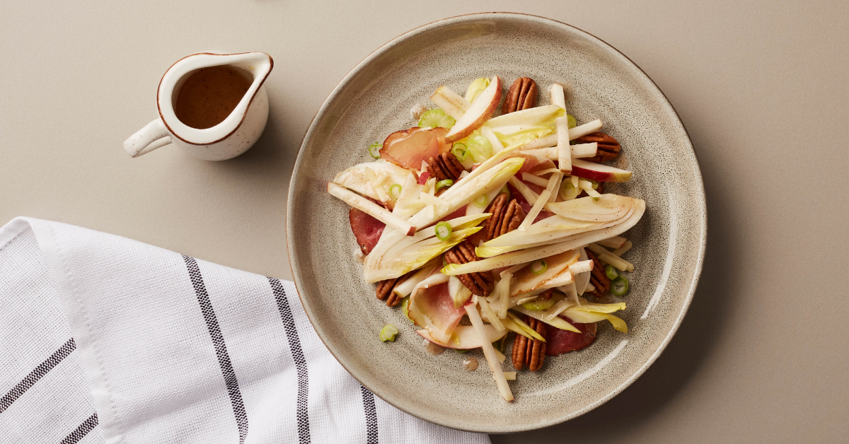 Et si on créait une salade à base d'endives, de pommes du Québec, de pacanes, de cheddar et de prosciutto fumé? Avouez qu’à la simple lecture de cette liste d'ingrédients, vous salivez. Élaborée par nul autre que Philippe de Vienne, le réputé chef-importateur d’épices, cette recette signée La Piazzetta, donne une formidable salade-repas d'hiver équilibrée et hautement savoureuse!
