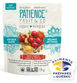 Ingrédient en vedette : Mélange artisanal Terre d’épices, de marque Patience Fruit & Co, produit par Fruit d'Or et certifié Aliments préparés au Québec.