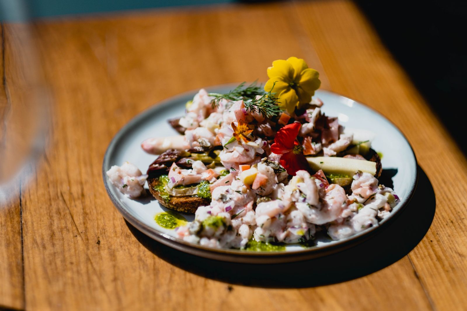 Recette de tartine de crevettes nordiques et asperges de saison du restaurant Les Fous Braques
