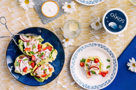 Le compte à rebours se rembobine, nous voici prêt à affronter cette nouvelle année en force grâce aux petits plaisirs de la vie, et heureusement chaque repas est une source de bonheur. Après plusieurs repas copieux des dernières semaines, essayons quelque chose de léger : roulés de laitue à la salade de poulet. En passant, les restants de dinde font aussi l’affaire! 20 minutes de préparation et 1 pot de yogourt nature 11 % Oikos, on part.