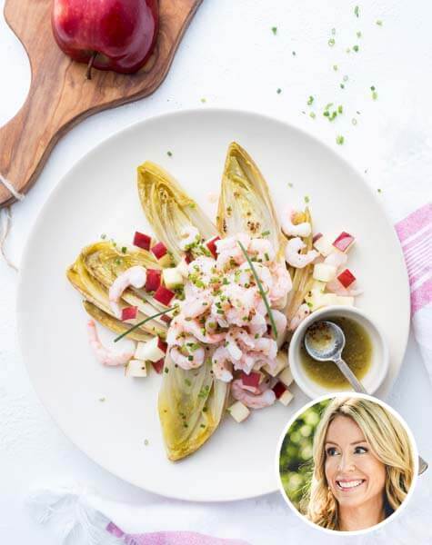 Salade tiède d'endives braisées et de crevettes nordiques
