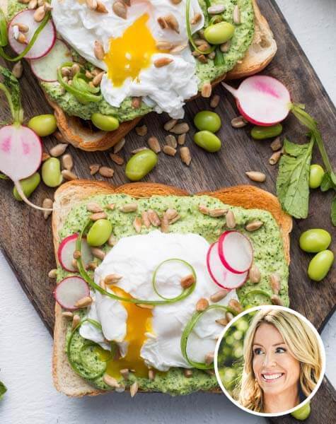 Tartines de houmous vert aux edamames et œufs pochés