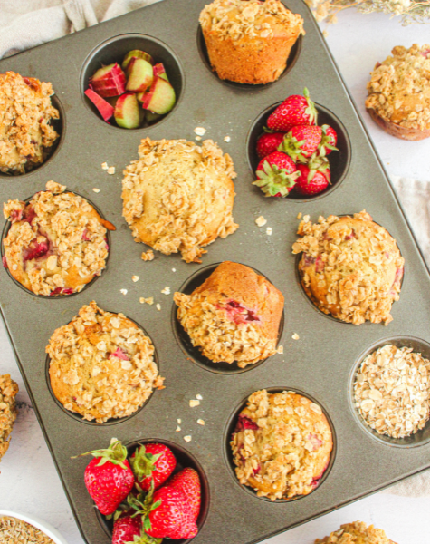 Muffins rhubarbe & fraises du Québec avec crumble