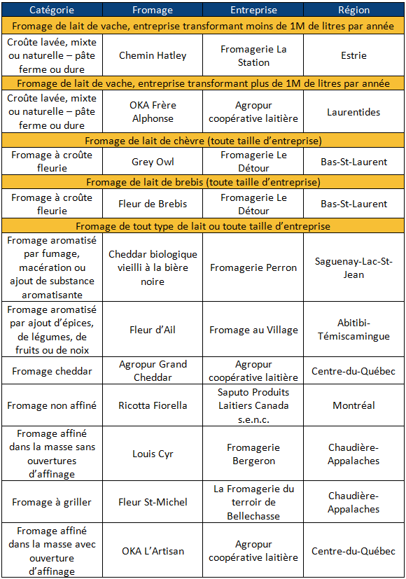 Félicitations à nos entreprises adhérentes qui ont su se démarquer cette année! De quoi bien remplir notre plateau de fromages de produits québécois!