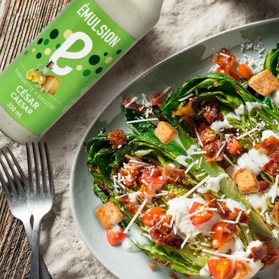 Il y a une foule de saveurs proposées: les classiques, comme la balsamique, la césar ou la ranch, et les éclatées, comme la framboise, la pomme et miel et la Dijon et oignon. La variété de saveurs permet d’agencer une vinaigrette Émulsion avec toutes vos créations. Elles deviendront rapidement indispensables au lunch comme au souper!
