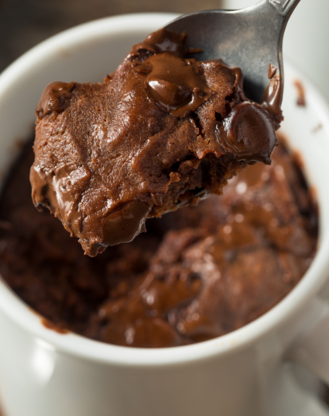 Dans une tasse? Oui, oui, dans une tasse! En plus de se sauver d’une pile de vaisselles, cette portion est idéale pour combler notre rage de sucre du jour. Œuf, farine, sucre et une touche cacao; deux minutes aux micro-ondes; boom, le paradis dans une tasse!