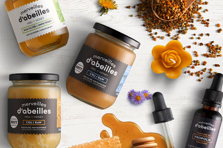 Allons maintenant à la rencontre de Merveilles d’abeilles! Cette ferme apicole familiale propose aux palais gourmands de savoureux miels saisonniers issus du libre butinage : pissenlit, arbres fruitiers, trèfle, luzerne, fleurs des bois et des champs, persistantes fleurs d’automne. Le miel y est désoperculé à la main et extrait à froid. Ni filtré, ni pasteurisé, il contient plus de pollen, de propolis et de cire d’abeille que la plupart des miels trouvés sur le marché. Une découverte qui mérite d’être partagée!